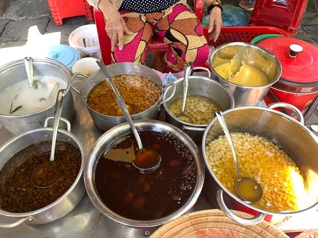 Trịnh trọng một tay cầm ly, một tay đẩy cái nắp soong chè, bên trong nồi nước chè đậu đỏ nâu sóng sánh, dì lặn cái vá hai lần để múc đậu, lần ba thêm vá nước..tôi nhìn theo cái vá những mong nó lặn thêm lần nữa!