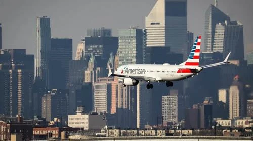 Một máy bay Boeing 737 Max 8 của American Airlines chuẩn bị hạ cánh tại sân bay LaGuardia, New York hôm 11-3. Ảnh: Aviation.