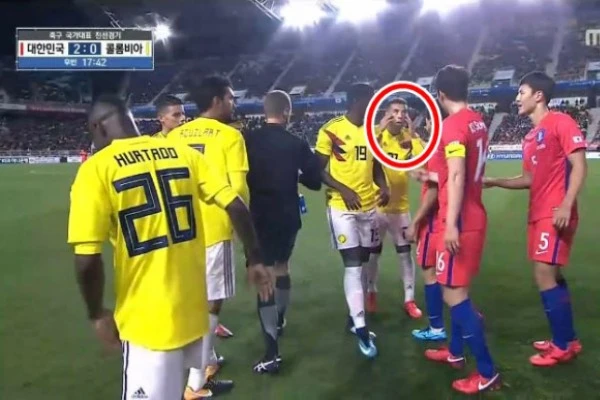 Trong trận giao hữu giữa Colombia và Hàn Quốc, những phút cuối trận, tuyển thủ Edwin Cardona của Colombia bị một cú va chạm đau với một tuyển thủ Hàn Quốc, Cardona đã dùng bộ dạng “má sưng, mắt híp” để chế nhạo cầu thủ Hàn Quốc. Tuyển thủ Colombia này chắc chắn phải nhận án phạt nặng từ FIFA vì hành vi phân biệt chủng tộc.