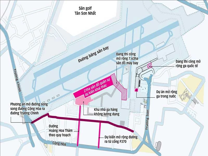 “Về phía sân bay, Bộ Quốc phòng đã thống nhất giao cho Tổng Công ty Hàng không Việt Nam khai thác 21 ha sân đỗ quân sự để mở rộng sân đỗ máy bay và xây dựng thêm một nhà ga hành khách lưỡng dụng nhằm giảm tải cho nhà ga hiện hữu. Theo tính toán sẽ mở thêm các đường dân sinh kết nối từ đường Phan Thúc Duyện ra đường Cộng Hòa, Hoàng Hoa Thám và Phạm Văn Bạch vào sân bay Tân Sơn Nhất” - vị này nói.