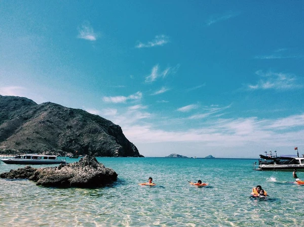 Nước trong vắt nhìn thấu tận đáy biển. Để đến đảo Kỳ Co, du khách phải di chuyển qua nhiều chặng, phổ biến nhất là cách đi đến Eo Gió, sau đó thuê thuyền hoặc cano đi ra đảo Kỳ Co. Thuyền sẽ đậu cách bờ khoảng 100 m, du khách sẽ lên thuyền thúng hoặc thuyền tự chế của người dân để vào bờ.