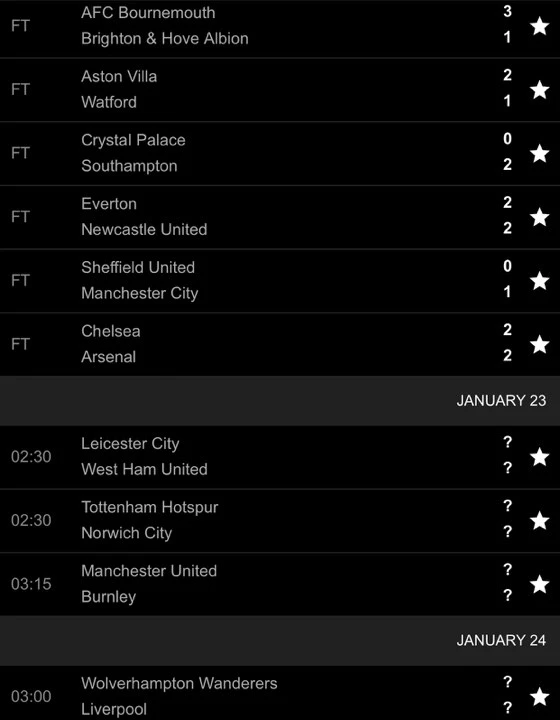 Kết quả vòng 24 Premier League: