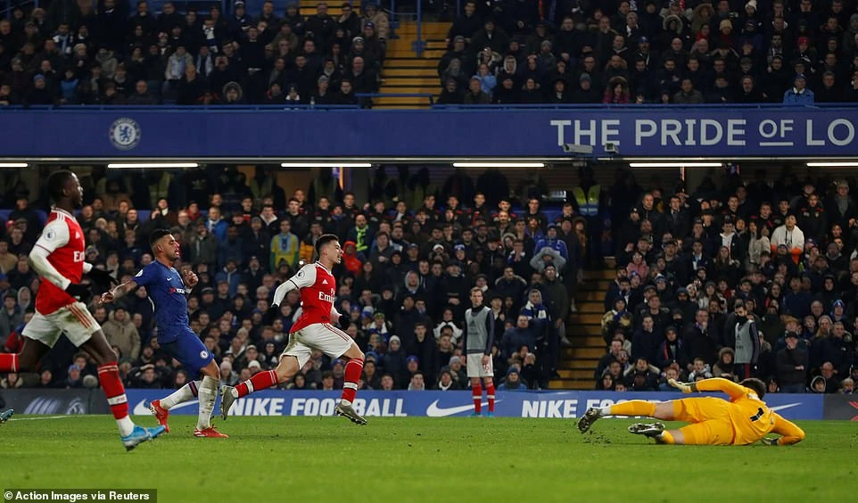 Từ pha phản công nhanh, tiền đạo Martinelli một mình băng vào vòng cấm của Chelsea rồi ghi bàn gỡ hòa ở phút 63.