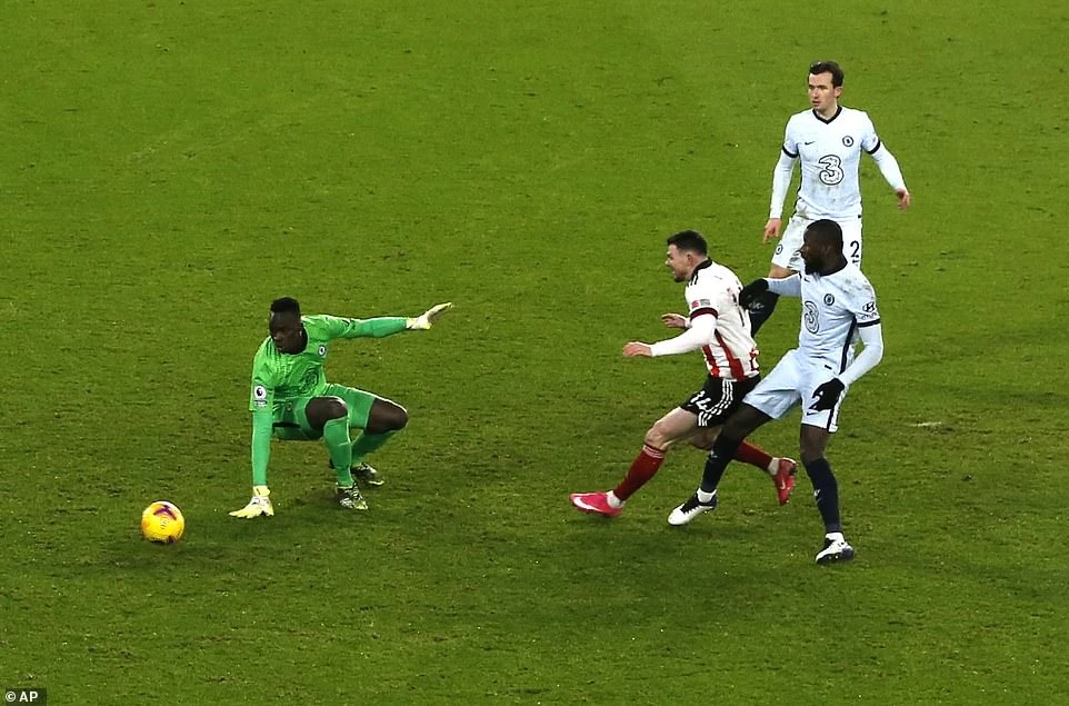 Tưởng chừng, có được bàn thắng Chelsea sẽ nhẹ gánh áp lực, nhưng sang hiệp hai “The Blues” bất ngờ rung lưới do sai lầm của trung vệ Rudiger. Trong tình huống cầu thủ của Sheffield United gây áp lực trong vòng cấm từ phía sau, buộc thủ môn Mendy phải dâng cao bắt bóng. Trong pha bóng này, thay vì che chắn cho thủ môn xử lý, thì Rudiger lại chuyền về tạo nên tình huống “đốt đền”.