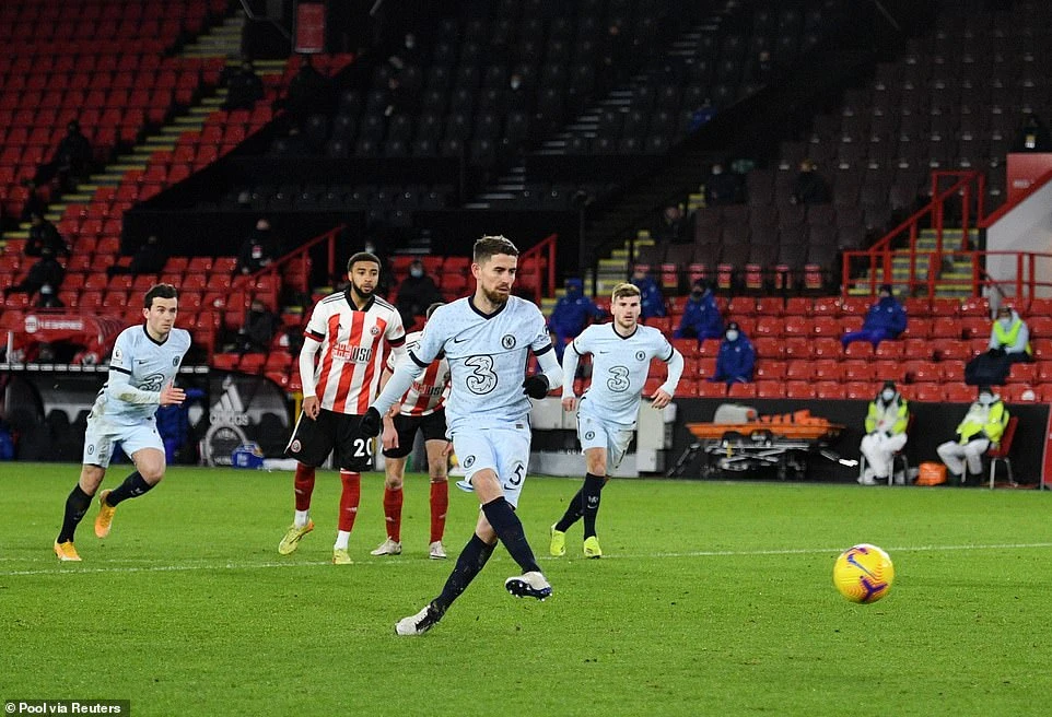 Nhận bàn thua không đáng có, tuy nhiên chỉ một phút sau Chelsea cũng có được bàn thắng để lấy lại thế dẫn bàn. Từ tình huống tiền đạo Werner băng vào vòng cấm, thủ môn Ramsdale phải băng ra cứu thua khiến cho Sheffield United phải chịu phạt đền. Trên chấm 11 mét, Jorginho không bỏ lỡ cơ hội ghi bàn để giúp Chelsea nâng tỷ số lên 2-1 ở phút 56.