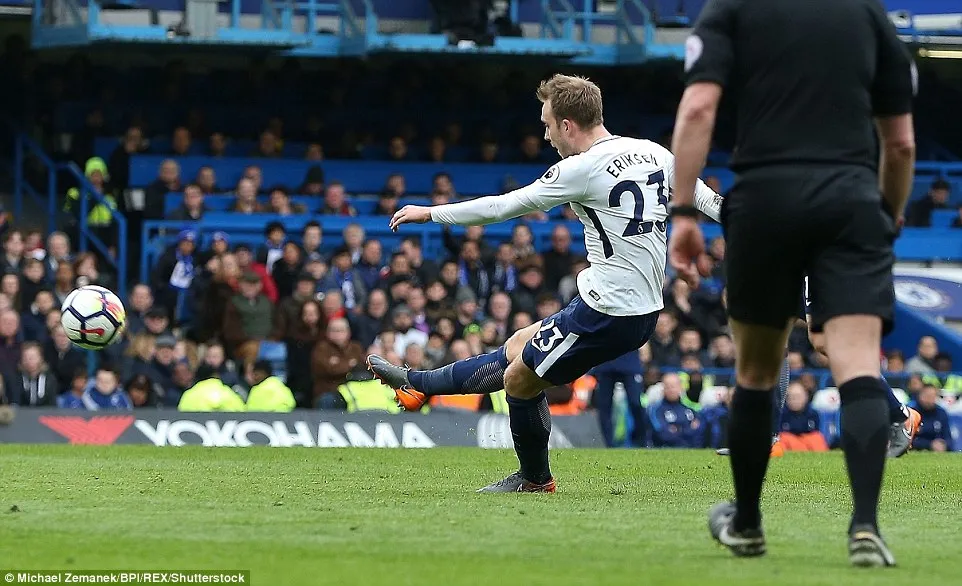 Eriksen tung cú sút hiểm hóc tạo lập thế cân bằng trước khi hiệp 1 kết thúc.