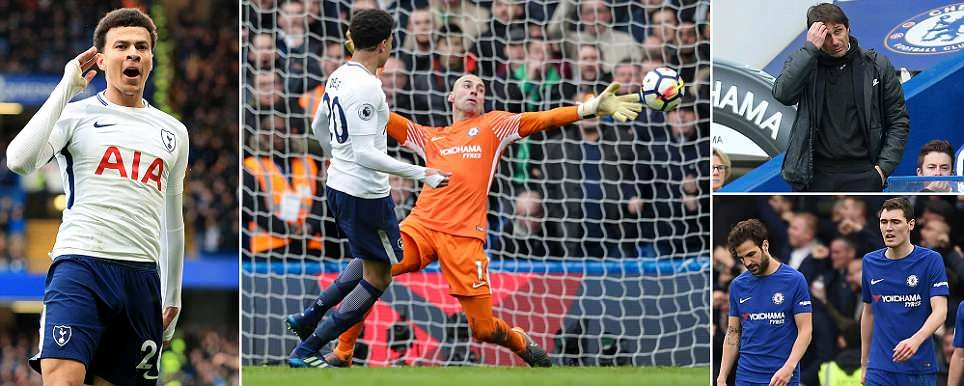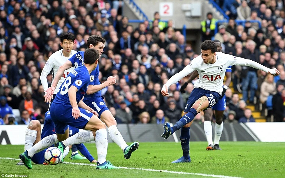 Và bất ngờ đã xảy ra khi Chelsea thua liền hai bàn chỉ trong vòng 4 phút. Phút 62, Eric Dier bất ngờ tung đường chuyền sát thủ từ phần sân nhà cho Alli phá bẩy việt vị băng xuống dứt điểm qua người Caballero trong thế đối mặt đưa Tottenham lần đầu vượt lên dẫn 2-1.