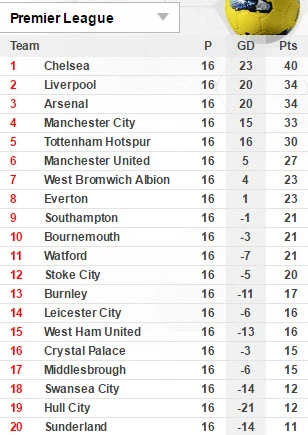 Thắng trận trước Sunderland, Chelsea xây chắc ngôi đầu với 6 điểm cách biệt so với hai đội xếp sau là Liverpool và Arsenal. Trong khi đó, chủ nhà Sunderland tất nhiên vẫn giậm chân tại chỗ với vị trí đội sổ trên bảng xếp hạng Premier League sau 16 vòng đấu.