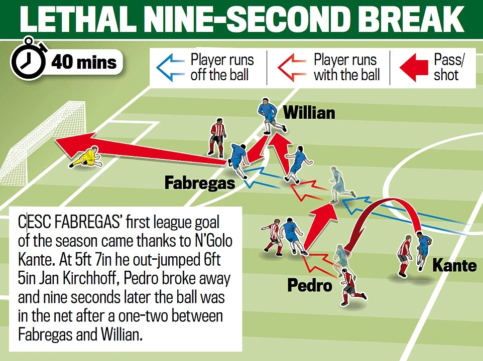 Phía Chelsea, HLV Conte dường như đã tìm được công thức chiến thắng cho đội bóng. Họ gần như không thay đổi đội hình xuất phát ở 8/9 trận trước đó. Điều này giúp Chelsea thi đấu ổn định và ăn ý hơn. Với trận thắng Sunderland, Chelsea đã thiết lập thành tích không tưởng 10 trận thắng liên tục ở Premier League.