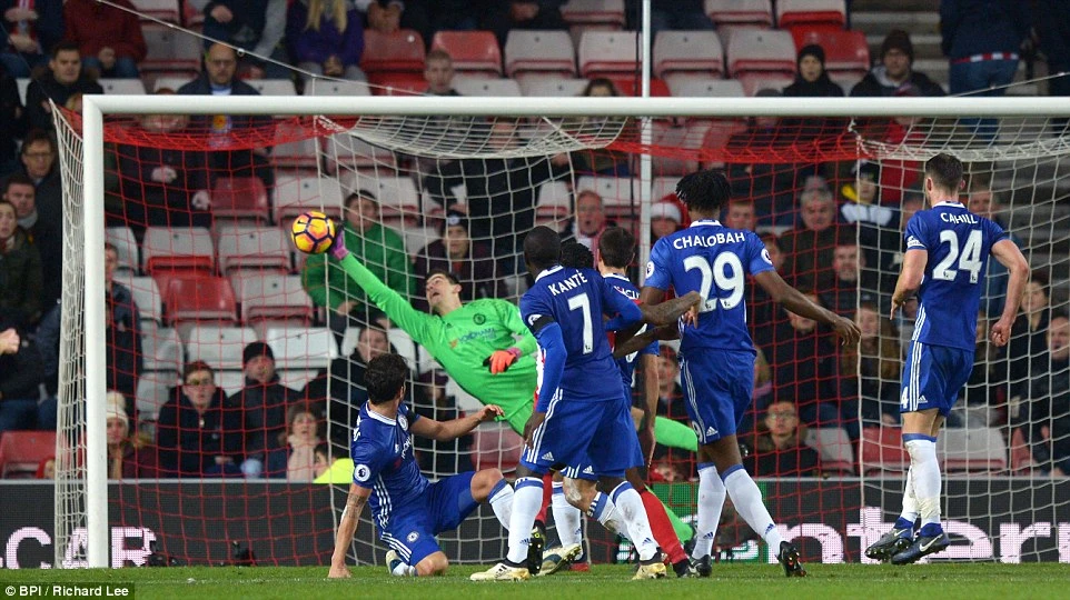 Sau bàn thắng, Chelsea vẫn như mọi khi thi đấu cực kỳ chắc chắn, hàng thủ mang thương hiệu Italia mà Conte tạo dựng đã không cho chủ nhà cơ hội có điểm. Thực tế, Sunderland cũng có một cơ hội rất tốt ở cuối trận nhưng pha kết thúc của Van Aanholt bị thủ thành Courtois đã xuất sắc bay người cản phá.