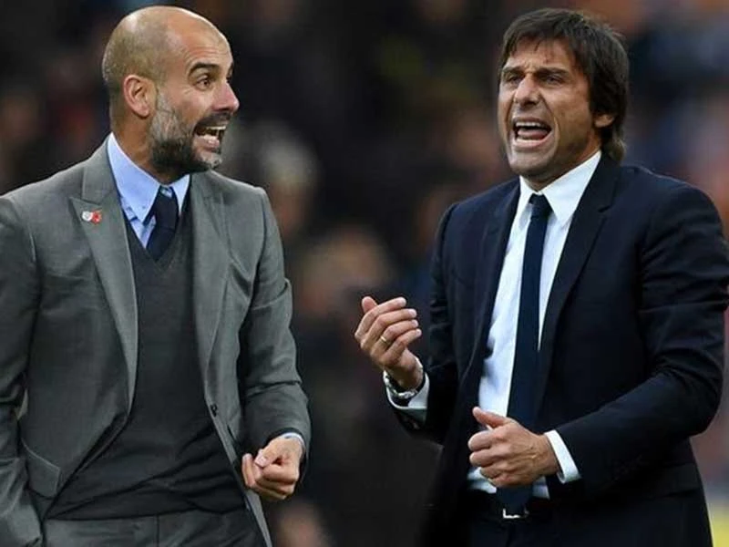 Hai nhà chiến lược tài ba Guardiola và Conte sẽ chiến đấu với nhau ở khu kỹ thuật. Ảnh: GETTY IMAGES