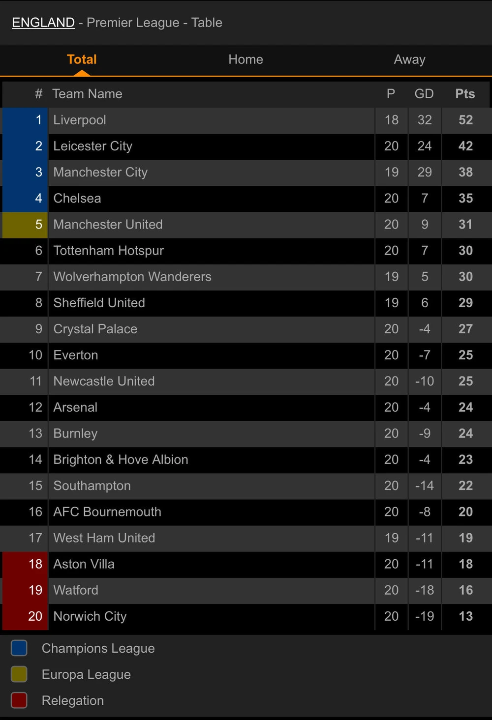 Giành chiến thắng nghẹt thở với tỉ số 2-1 trước Arsenal tại Emirates, thầy trò HLV Frank Lampard thở phào nhẹ nhõm vì vị trí thứ tư của Chelsea đã tương đối an toàn. Sau 20 vòng đấu, Chelsea có được 35 điểm, hơn đội xếp thứ năm là Man. United 4 điểm. Ngược lại, Arsenal khi nhận trận thua cay đắng này vẫn tiếp tục lặn ngụp ở nửa dưới bảng xếp hạng khi đứng thứ 12 với 24 điểm.