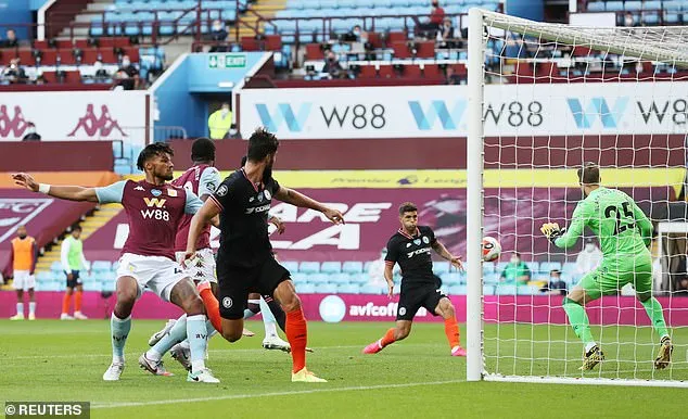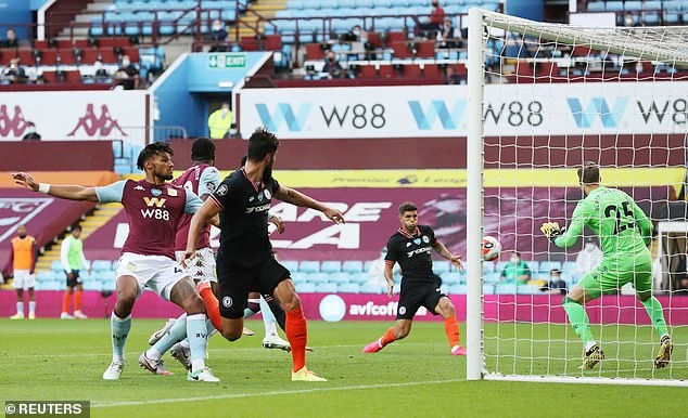 Tuy nhiên đội chủ nhà Aston Villa đã đứng vững và tạo nên bất ngờ ở thời gian cuối hiệp một khi ghi bàn vươn lên dẫn trước ở phút 43. Từ tình huống tạt bóng vào vòng cấm của tiền vệ Douglas Luiz, cầu thủ của Aston Villa băng vào đệm bóng cận thành. Mặc dù thủ môn Kepa đã xuất sắc cứu thua ở pha bóng đầu tiên, tuy nhiên ở pha đá bồi sau đó Kepa đành bất lực nhìn bóng lăn vào lưới.