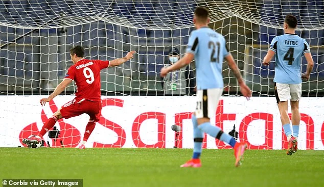 Lewandowski tận dụng sai lầm của hậu vệ Lazio để ghi bàn mở tỷ số. Ảnh: Getty Images