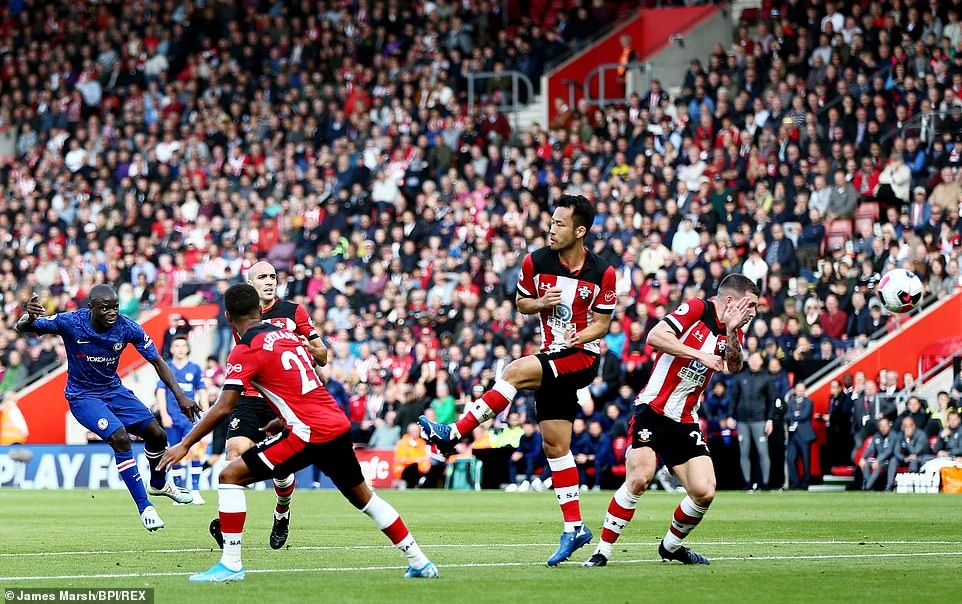 Với lối chơi lấn lướt, Chelsea dễ dàng tái lập khoảng cách 2 bàn cách biệt khi Kante tung cú sút xa trước vòng cấm ở phút 40. Đội khách Chelsea kết thúc hiệp một thoải mái khi dẫn trước chủ nhà Southampton với tỷ số 3-1.