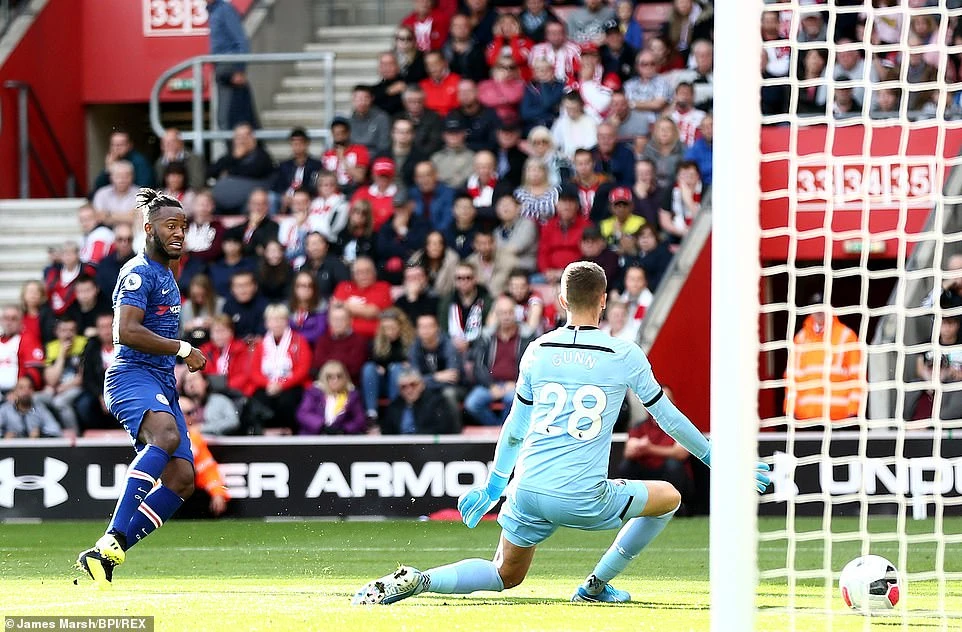 Trung phong Tammy Abraham khai thông thế bế tắc cho Chelsea ở phút 17 bằng pha bấm bóng điệu nghệ để trừng trị sai lầm của thủ môn Angus Gunn khi đã rời bỏ khung thành dâng lên quá cao. Mặc dù hậu vệ của đội chủ nhà đã tung người cản phá nhưng trọng tài vẫn công nhận bàn thắng cho Chelsea khi bóng đã đi qua vạch vôi.