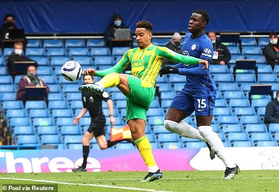 Hưng phấn sau bàn gỡ, Phillips ngay sau đó có pha dứt điểm dội xà ngang Chelsea. Chỉ 1 phút sau, phút 45+4, các cầu thủ Chelsea mất bóng ngay phần sân nhà và lại là Matheus Pereira có pha dứt diểm nhẹ nhàng giữa rừng hậu vệ Chelsea khiến Mendy chỉ biết đứng nhìn bóng chui vào lưới. West Brom ngược dòng dẫn lại Chelsea 2-1 ngay trong hiệp 1.