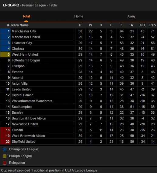 Chelsea vẫn đứng thứ 4 trên bảng xếp hạng Premier League với 51 điểm nhưng các đội xếp sau như West Ham và Tottenham chỉ kém Chelsea lần lượt 2 và 3 điểm lại còn thi đấu ít hơn 1 trận.