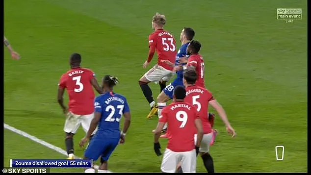 Ở pha ghi bàn của Zouma từ tình huống đá phạt góc, VAR can thiệp khi xác định trước đó Cesar Azpilicueta phạm lỗi đẩy sau với Brandon Williams. Ở tình huống dứt điểm tung lưới MU lần thứ hai, tiền đạo Olivier Giroud đã rơi vào thế việt vị… chưa tới nửa bước chân.