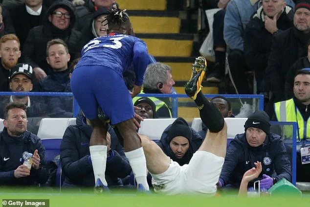 Tình huống Cesar Azpilicueta phạm lỗi đẩy sau với Brandon William.