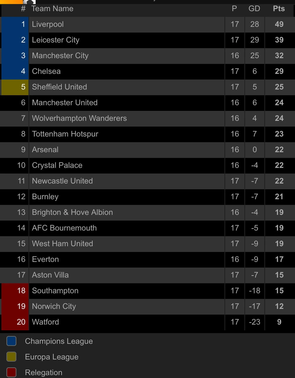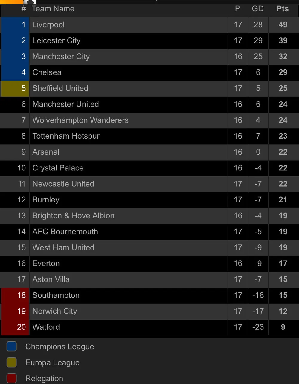 Để thua bất ngờ với tỉ số 0-1 trên sân nhà trước Bournemouth khiến Chelsea khó giữ được vị trí trong tốp 4. Sau 17 vòng đấu, Chelsea có được 29 điểm, vẫn giữ vị trí thứ tư trên bảng xếp hạng.