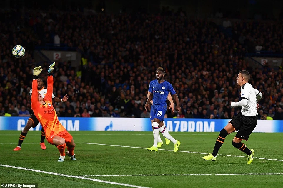 Sang hiệp hai thế trận tấn công áp đảo tiếp tục được Chelsea duy trì, nhưng đến phút 74 bất ngờ Valencia lại là đội có được bàn thắng. Từ tình huống đá phạt của Parejo, cầu thủ trẻ chạy cánh Rodrigo băng vào dứt điểm đánh bại thủ môn Kepa mở tỷ số cho đội khách Valencia.