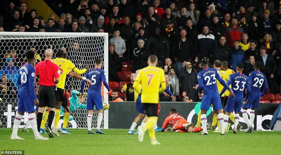 Thậm chí, người gác đền của Watford còn suýt khiến Chelsea ôm hận bằng pha đánh đầu phút bù giờ.