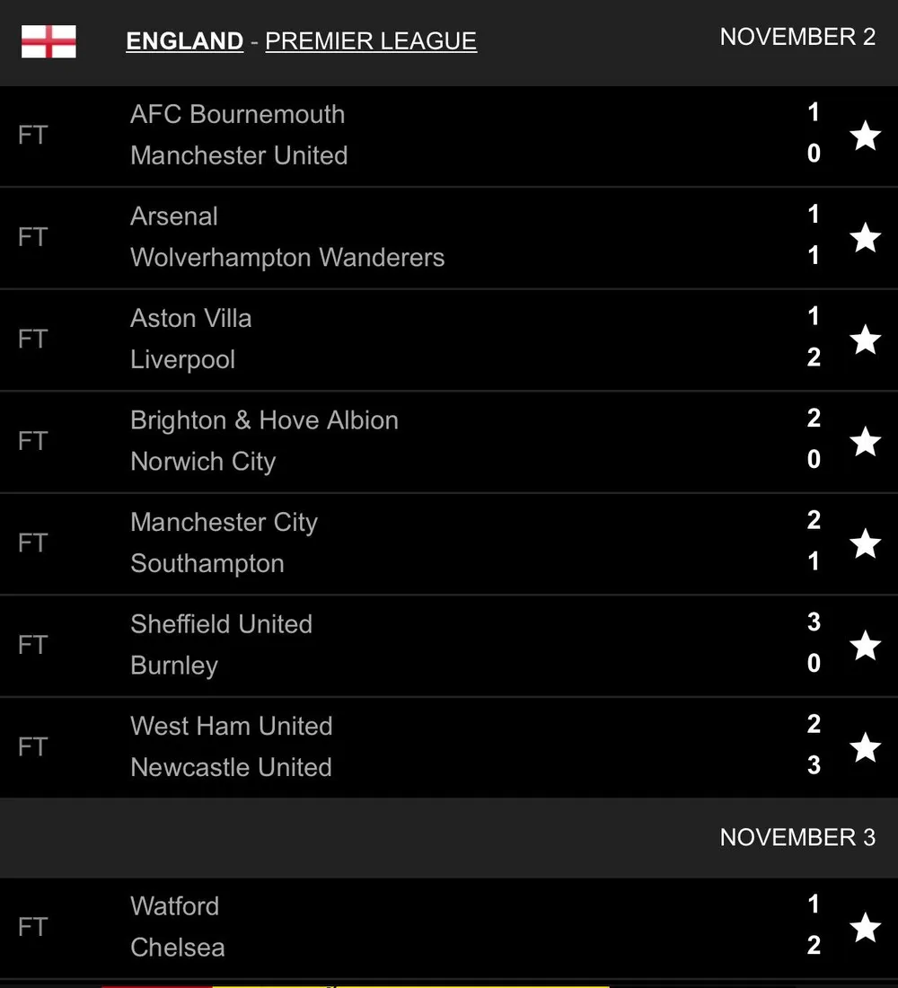 Kết quả vòng 11 Premier League: