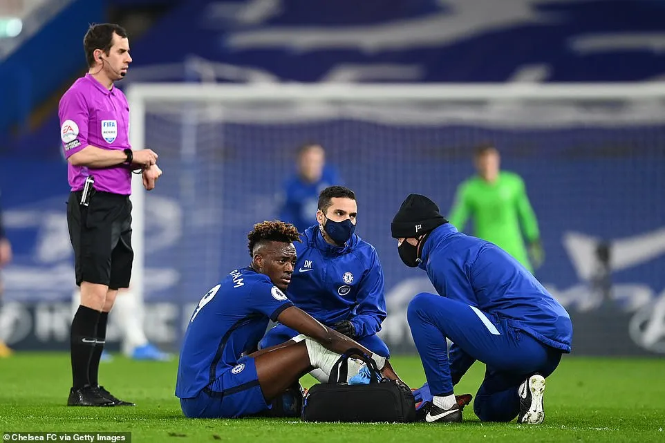 Tammy Abraham thi đấu được 20 phút nhưng phải rời sân do dính chấn thương. Ảnh: Getty Images.