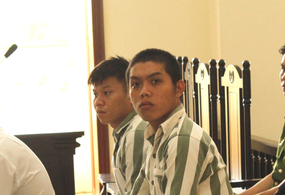 Hai bị cáo Nhứt và Cường tại tòa ngày 19-6. Ảnh: NHẪN NAM