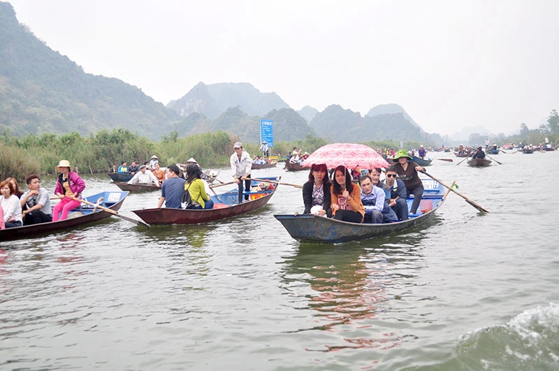 Trên suối Yến, tấp nập những chuyến đò đưa du khách vào thắng cảnh Hương Sơn