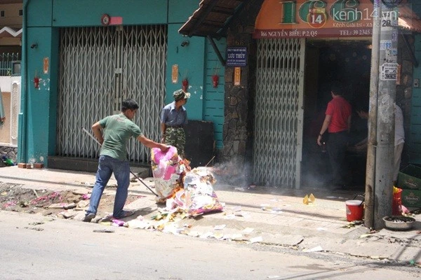Cảnh hoang tàn sau buổi lễ cúng cô hồn, người nhà phải dọn dẹp.