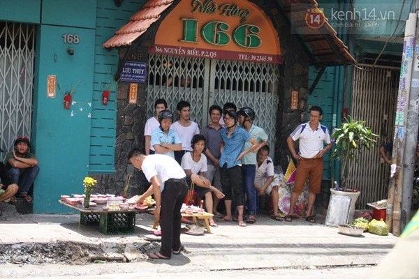 Ông chủ nhà hàng (số 166, đường Nguyễn Biểu, P.2, Q.5, TP.HCM) đang chuẩn bị cho buổi cúng cô hồn của gia đình. Dưới sự "canh phòng" nghiêm ngặt của nhiều "cô hồn sống".
