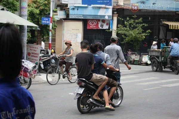 Sau khi cướp, đếm tiền xong, “cô hồn sống” kẹp ba, tống bốn leo lên xe để tiếp tục hành trình của mình với đầu trần không cần mũ bảo hiểm.