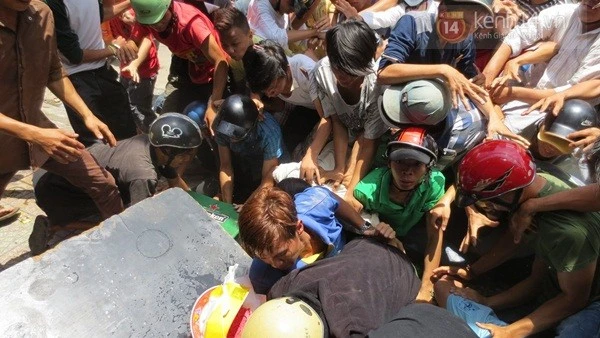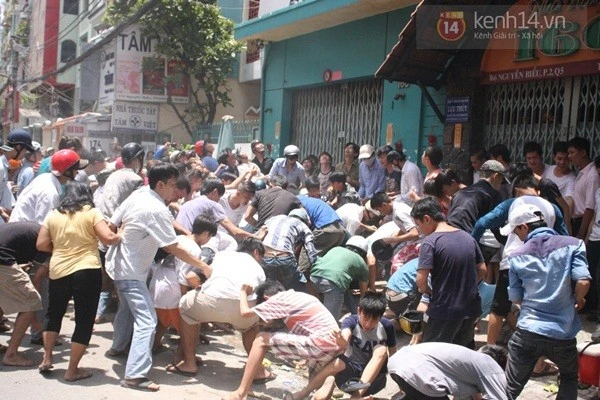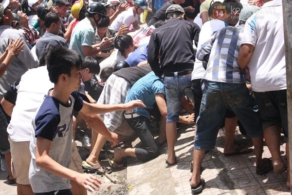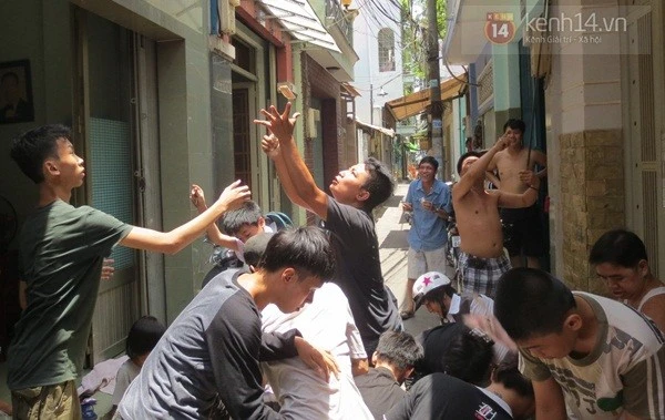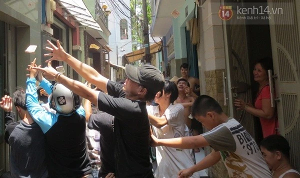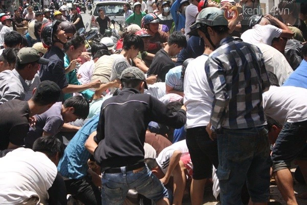 Chen lấn, dẫm đạp lên nhau để cướp tiền. Không chỉ có các thanh niên choai choai, mà cả những người trung tuổi, phụ nữ cũng tham dự.