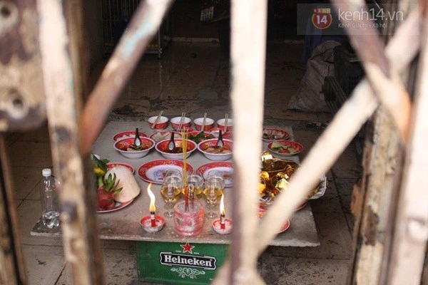Một gia đình ngay sát nhà hàng 166, kinh hoàng với cảnh tượng cướp tiền nên đóng mít cửa, dù bàn cúng đã bày sẵn.