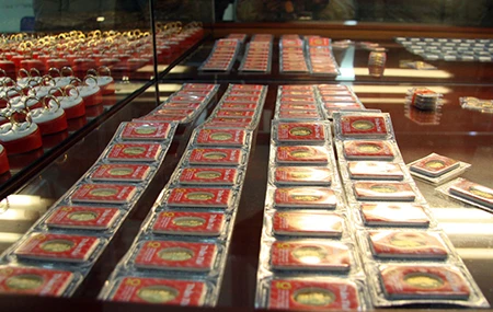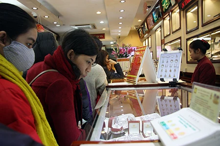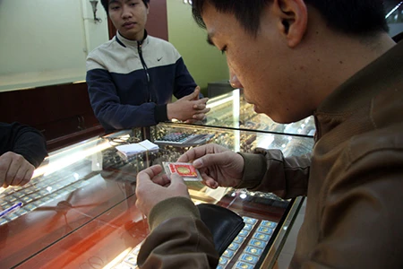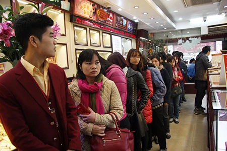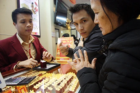 Theo một số chủ cửa hàng vàng bạc, giá vàng trong ngày thần tài không tăng so với ngày thường. Ảnh: Phi Hùng.