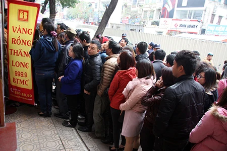 Người dân xếp hàng dài cả trăm mét chờ mua vàng ngày thần tài. Ảnh: Hoàng Nam Giang