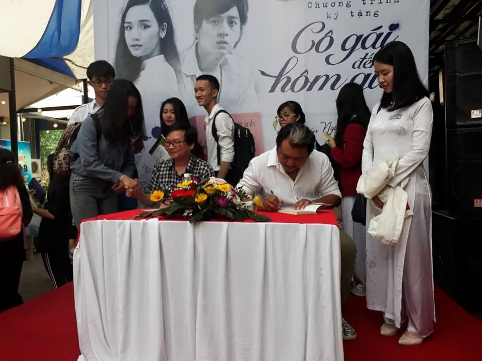 Lý do có sự hội ngộ của nhà văn ăn khách và đạo diễn ăn khách này vì Nhà xuất bản Trẻ mời họ đến ký tặng nhân ra mắt phiên bản đặc biệt của bản sách Cô gái đến từ hôm qua – một truyện dài nổi tiếng nhiều năm qua của nhà văn Nguyễn Nhật Ánh và nhân sự kiện bộ phim chuyển thể từ truyện này sắp khởi chiếu.