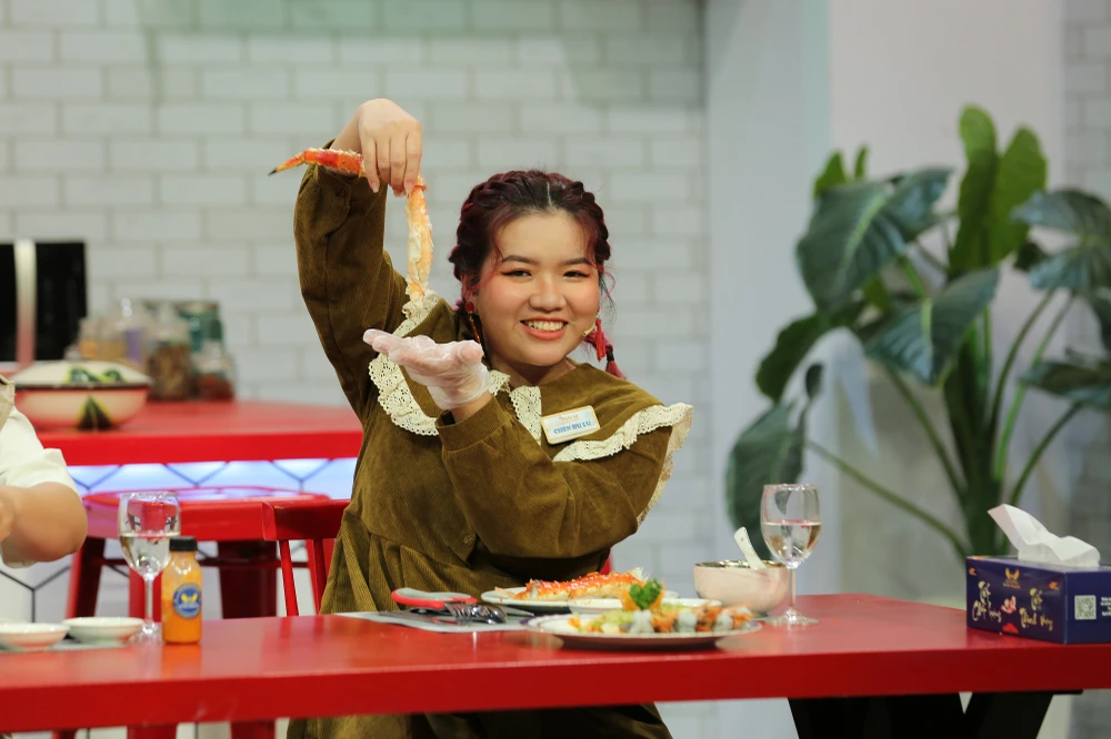 Bằng kinh nghiệm sành ăn của mình, Chen Ru Lu khiến Quốc Khánh và Lê Trang trầm trồ với khả năng lột vỏ chân cua đỉnh đến mức không bị mất đi một thớ thịt nào.
