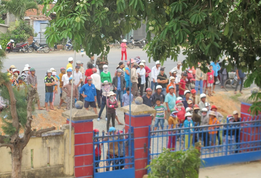 HX 2: Rất đông người dân hiếu kỳ kéo đến trước trụ sở UBND xã Hòa Xuân Đông. Ảnh: TẤN LỘC