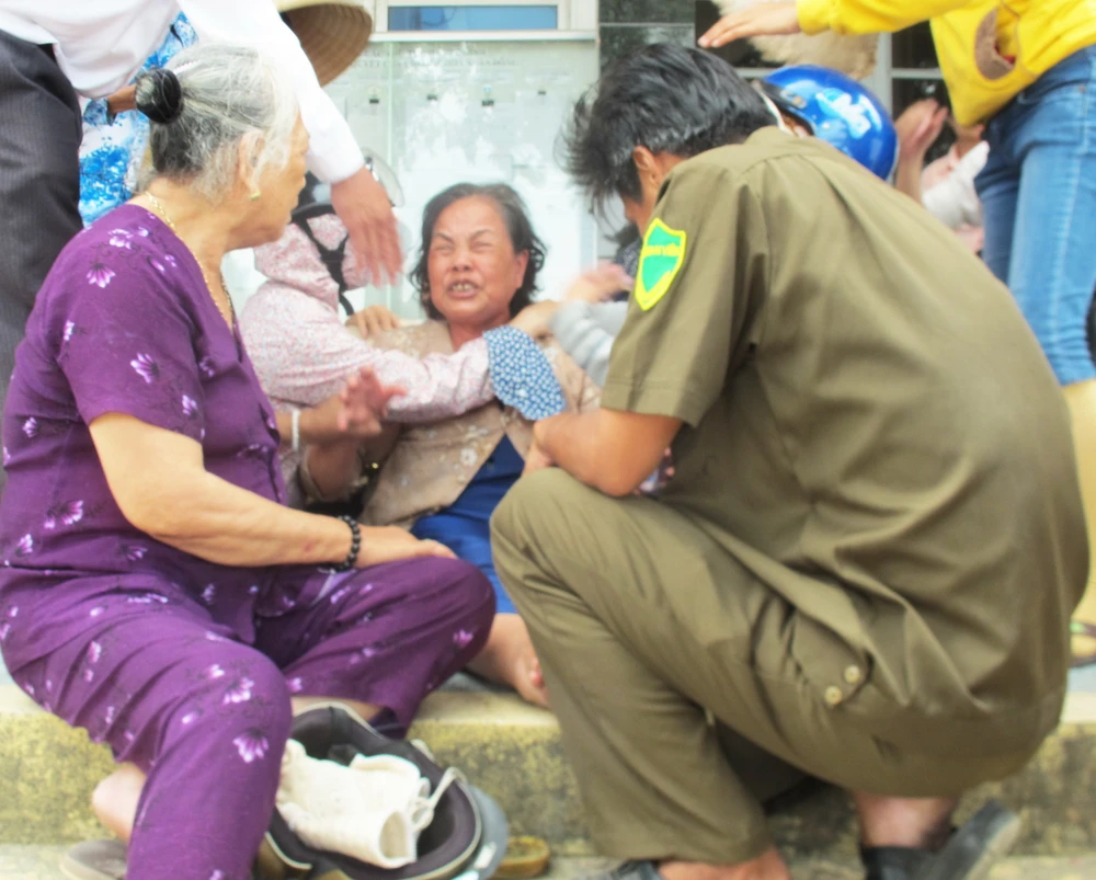 Vợ ông Chiêm đau đớn khi nghe tin chồng chết đột ngột. Ảnh: TẤN LỘC