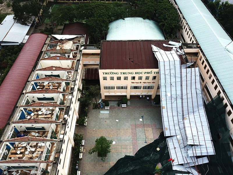 Ban quản lý dự án đầu tư xây dựng các công trình dân dụng và công nghiệp của TP sử dụng quỹ phòng, chống thiên tai, lụt bão với kinh phí ước tính 2,9 tỉ đồng, làm chủ đầu tư thực hiện hạng mục sửa chữa để thực hiện khắc phục gia cố, sửa chữa thiết lập lại hiện trạng mái che cho hai khối nhà A, B vì đây là sự cố bất khả kháng do thiên tai.