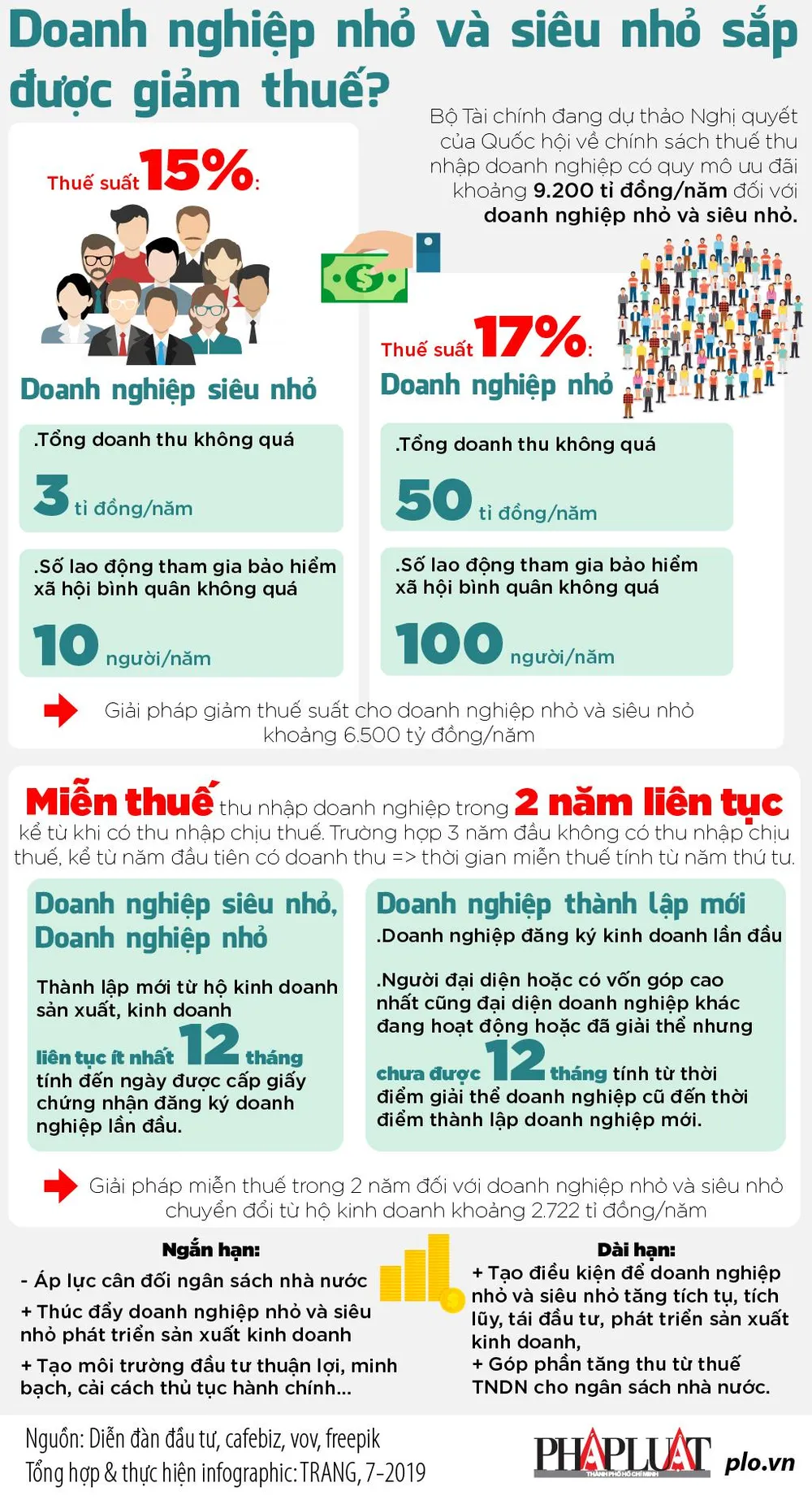 (PLO)- Bộ Tài chính đang dự thảo Nghị quyết của Quốc hội về một số chính sách thuế thu nhập doanh nghiệp nhằm hỗ trợ, phát triển doanh nghiệp nhỏ và siêu nhỏ. Việc thực hiện các giải pháp tại dự thảo Nghị quyết có thể làm giảm thu ngân sách khoảng 9.200 tỷ đồng/năm.