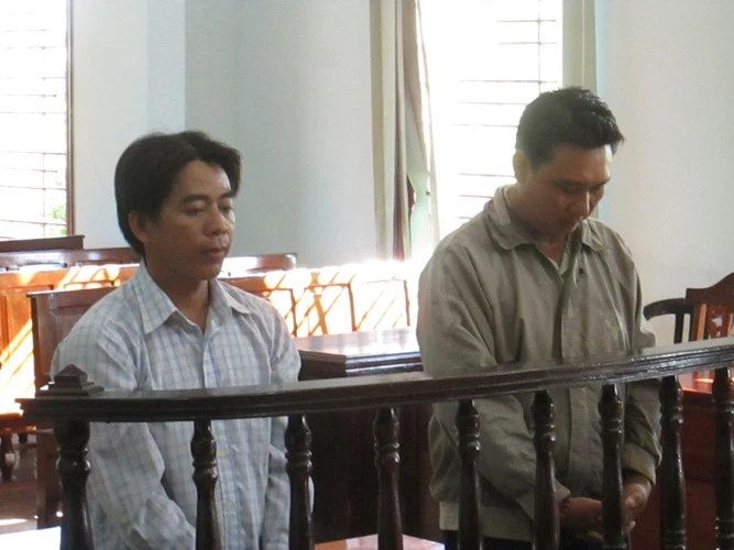 Hai bị cáo Nguyễn Thanh Dũng (bìa phải) và Huỳnh Công Duyệt tại tòa ngày 12-6. Ảnh: N.NAM