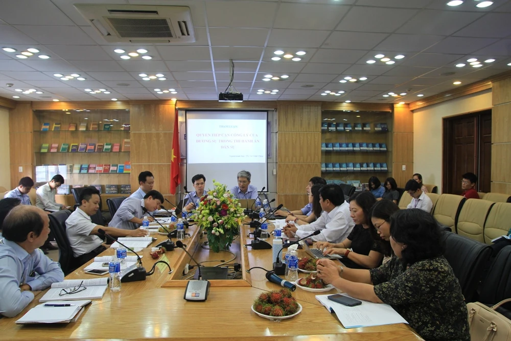 Chủ trì hội thảo là PGS. TS Đỗ Văn Đại – Trưởng khoa Luật Dân sự và PGS. TS Nguyễn Thị Hoài Phương – Phó Trưởng khoa Luật Dân sự, phụ trách công tác tổ chức TS. Nguyễn Văn Tiến – Trưởng Bộ môn Luật TTDS-HNGĐ cùng sự tham gia của các đại biểu và các thầy cô, sinh viên.