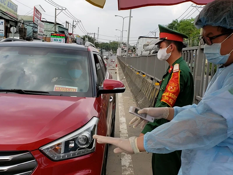 Các chốt kiểm dịch COVID-19 ở cửa ngõ vào TP.HCM hiện vẫn hoạt động bình thường. Chiều 16-4, tại chốt kiểm dịch trên quốc lộ 1K (quận Thủ Đức, TP.HCM) lực lượng chức năng cho dừng nhiều ô tô để đo thân nhiệt người trên xe. Chỉ trong khoảng 2 giờ đồng hồ, năm tài xế ô tô có thân nhiệt cao đã được lực lượng chức năng yêu cầu dừng xe, tái kiểm tra.
