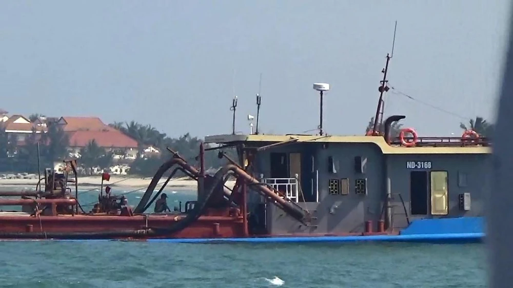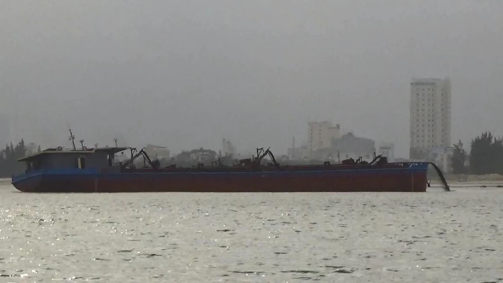 Tàu hút cát tại Cửa Đại để ra san lấp mặt bằng tại Đà Nẵng. Ảnh: QT
