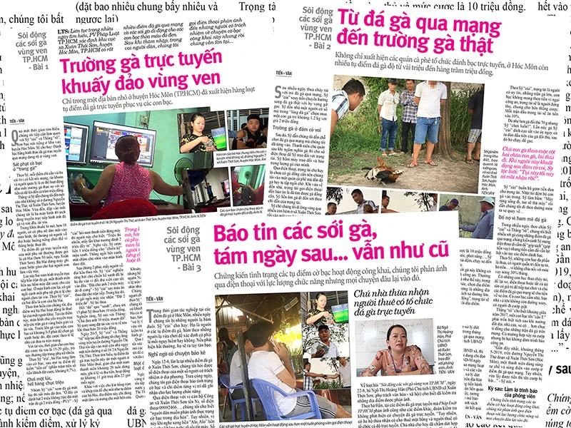 Khi loạt bài khởi đăng, chủ tịch UBND huyện Hóc Môn lúc đó đã ra văn bản khẩn, yêu cầu Công an huyện Hóc Môn chỉ đạo Đội Cảnh sát hình sự tổng rà soát, triển khai ngay các biện pháp nghiệp vụ để xử lý nghiêm các điểm đá gà qua mạng trên địa bàn để xử lý nghiêm.