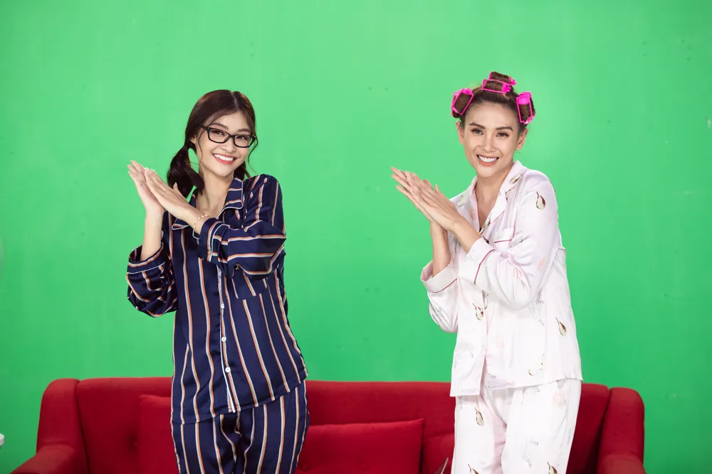 Miss hóng hớt Võ Hoàng Yến cùng Á hậu Kiều Loan kết hợp chống dịch COVID-19. Ảnh: Sen Vàng